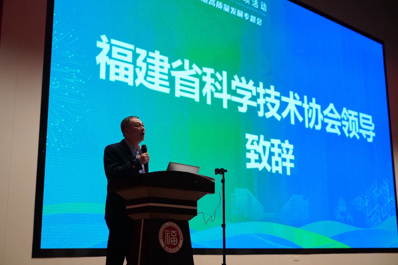 福建省科协党组成员、副主席卢哲明致辞,他强调要以科技创新引领传统产业转型升级,充分发挥“企业家+科学家”融合创新机制的示范效应。福州大学副校长卢孝强通过线上方式致辞并介绍福州大学晋江校区根植地方产业、开展产学研合作的成效。据悉福州大学晋江校区已与安踏、劲霸、三六一度等龙头企业共建多个校企联合研发中心,形成“研发—转化—应用”的创新闭环。