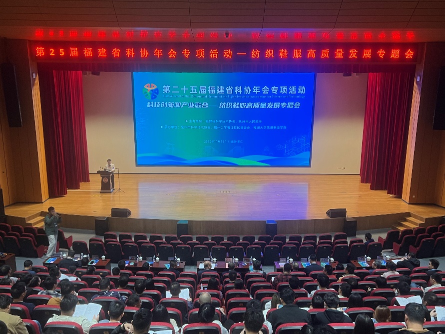 2025年11月25日,第25届福建省科协年会专项活动“纺织鞋服产业高质量发展专题会”在福州大学晋江校区成功举办。本次会议以“创新驱动、产学研融合”为核心,汇聚省内外知名专家、科研力量与行业龙头企业代表,聚焦智能化升级、绿色制造、新材料应用等前沿方向,为晋江乃至福建纺织鞋服产业高质量发展注入强劲科技动能。福建省科协党组成员、副主席卢哲明,福州大学先进制造学院院长林瑞全出席会议,泉州市科协,泉州市科技局及晋江市科协领导参会,会议由福州大学先进制造学院林志贤副院长主持。